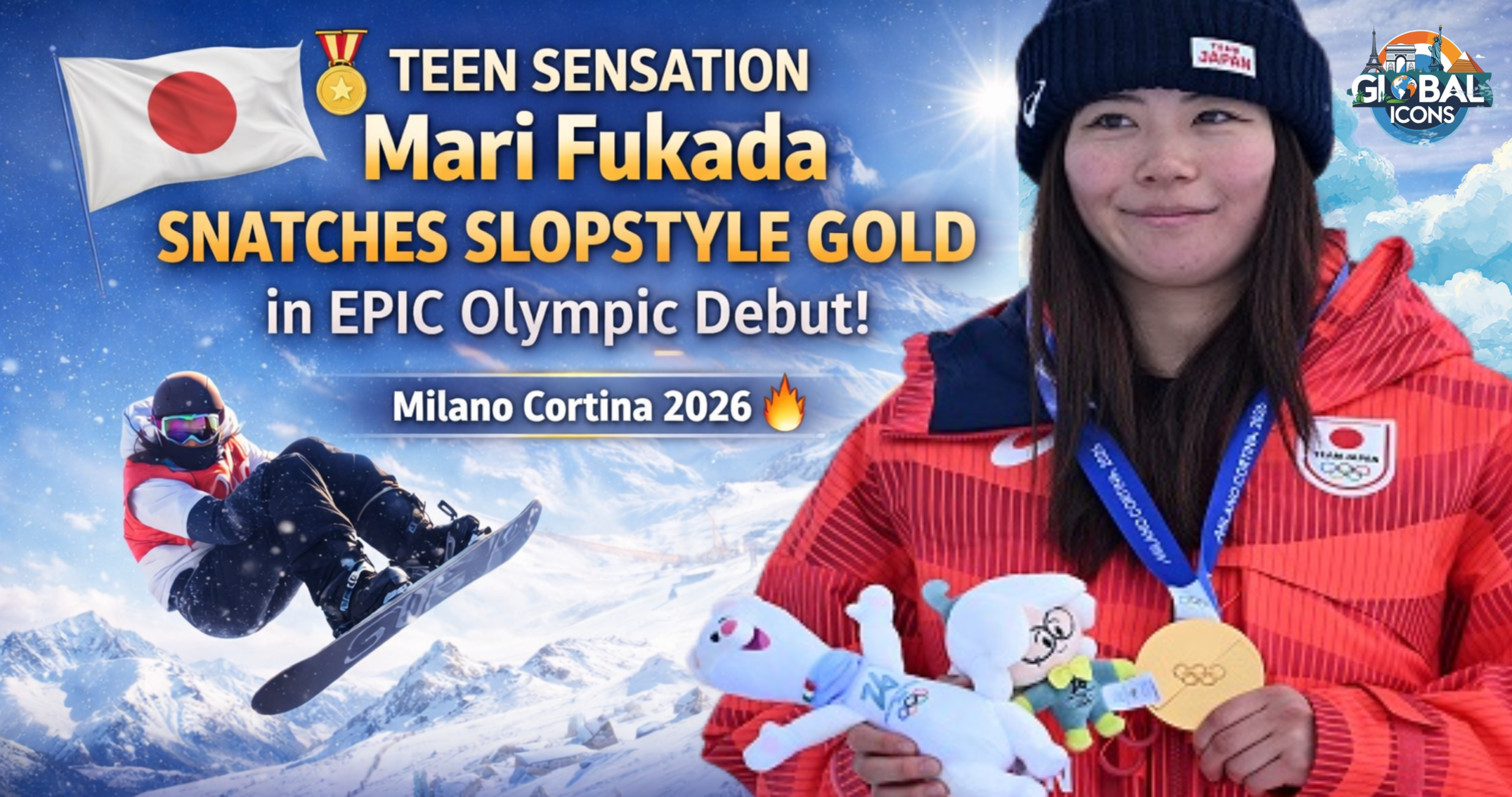In a breathtaking Olympic debut, 19-year-old Japanese sensation Mari Fukada snatched women’s snowboard slopestyle gold at the Milano Cortina 2026 Winter Games, posting a flawless final-run score of 87.83 to hold off New Zealand’s reigning champion Zoi Sadowski-Synnott by a razor-thin 0.35 points.
